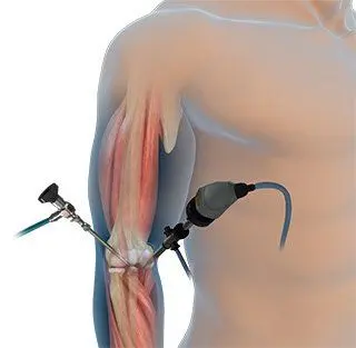 Several tiny incisions are made to insert the arthroscope and small surgical instruments into the joint. To enhance the clarity of the elbow structures through the arthroscope, your surgeon will fill the elbow joint with a sterile liquid.